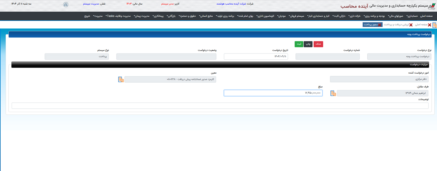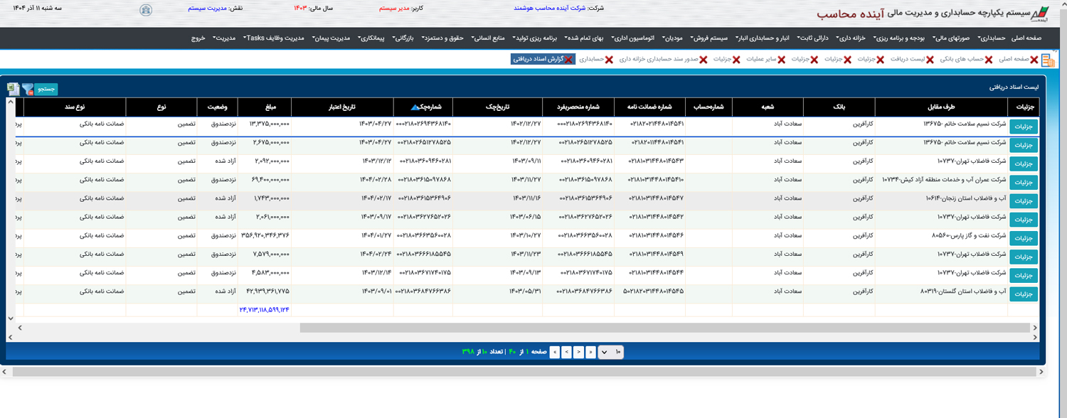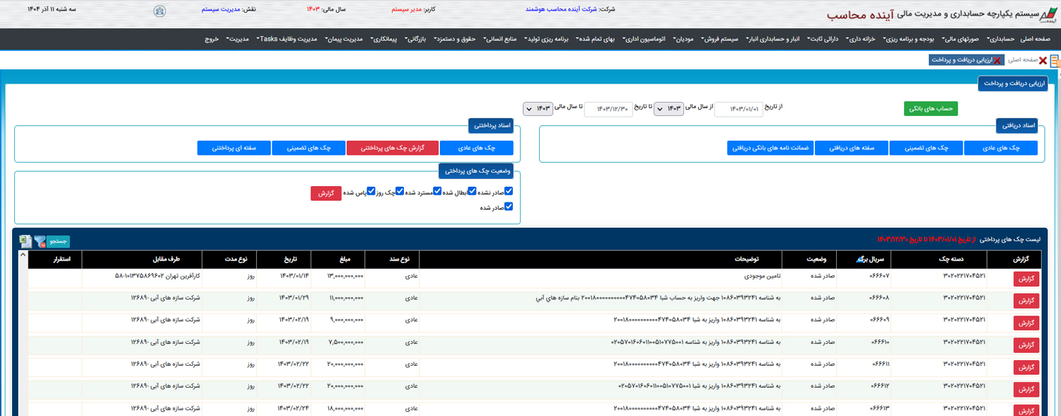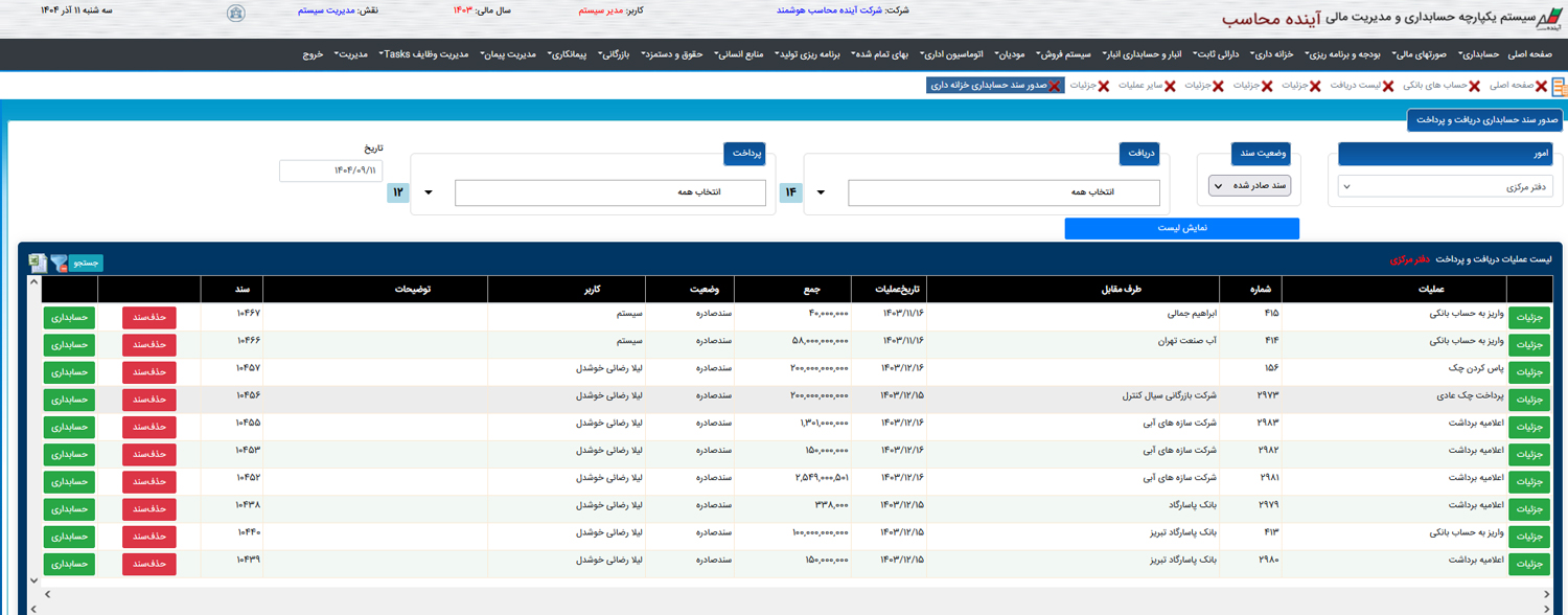مدیریت دقیق عملیات دریافت، پرداخت، چکها، حوالهها و نقدینگی سازمان